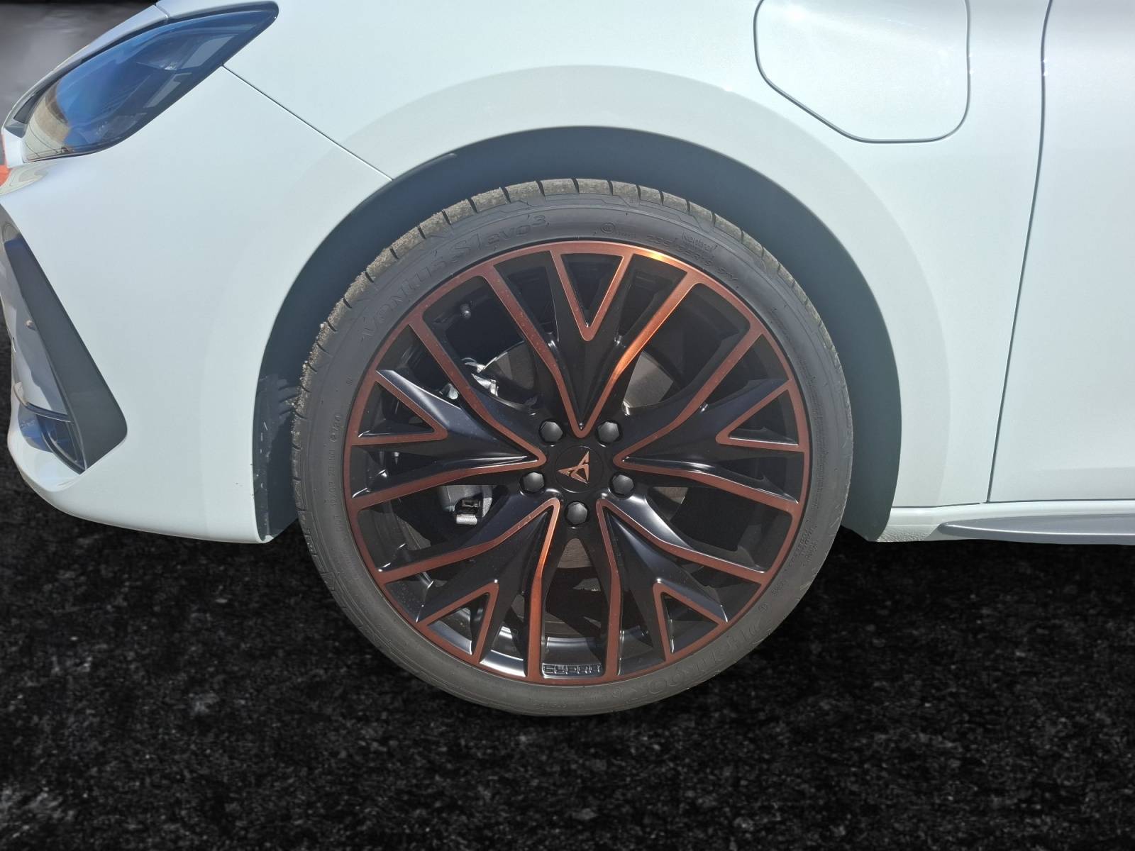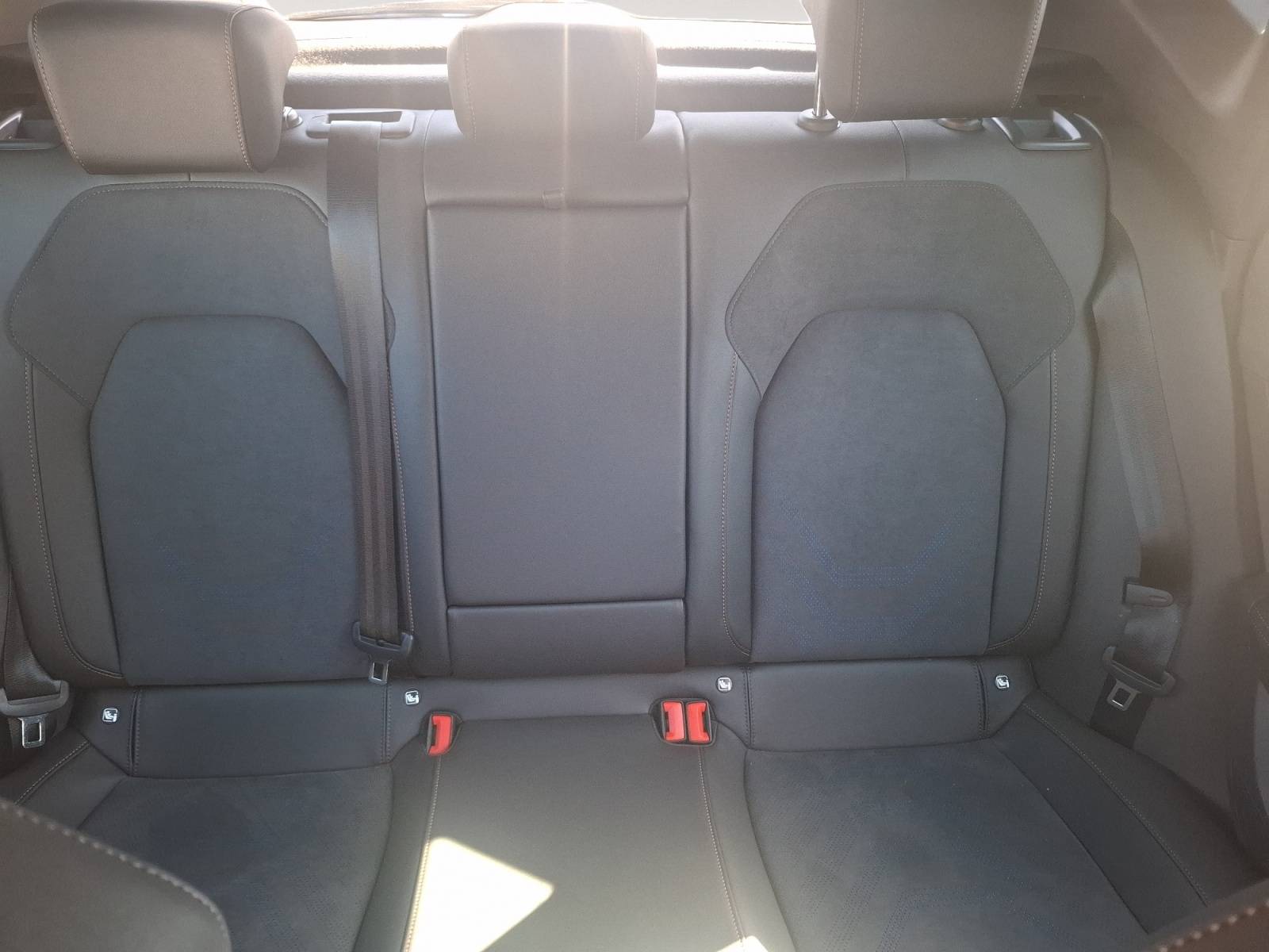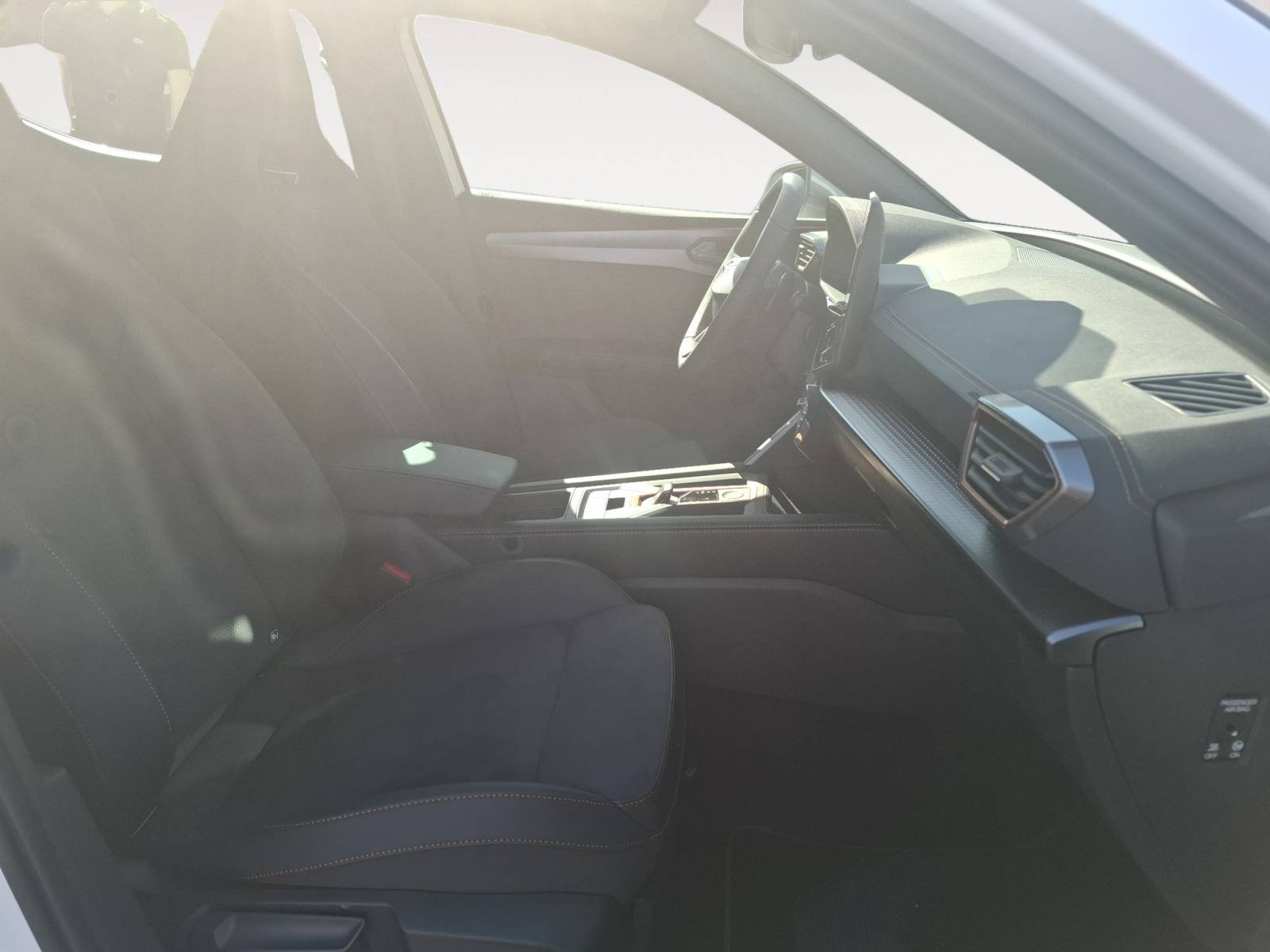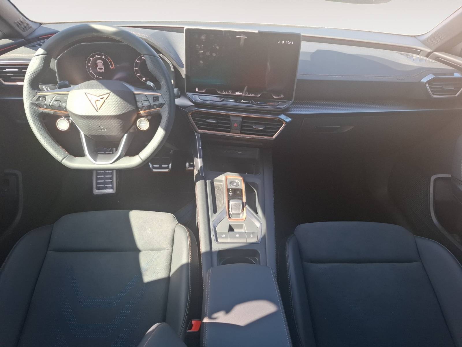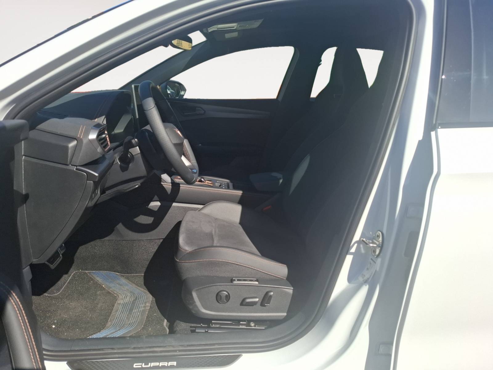 – Design intérieur Dynamic – Sièges baquets suédine Noir Asphalte avec poinçonnage et surpiqûres cuivrées – Logos CUPRA estampés sur les appuie-têtes – Planche de bord noire texturée avec inserts Dark Alu – Contre-portes suédine noire avec poinçonnage cuivré – Conducteur : siège électrique, dont réglage lombaire, à mémoire – Passager : réglage manuel de la hauteur et lombaire – Conducteur + passager chauffants