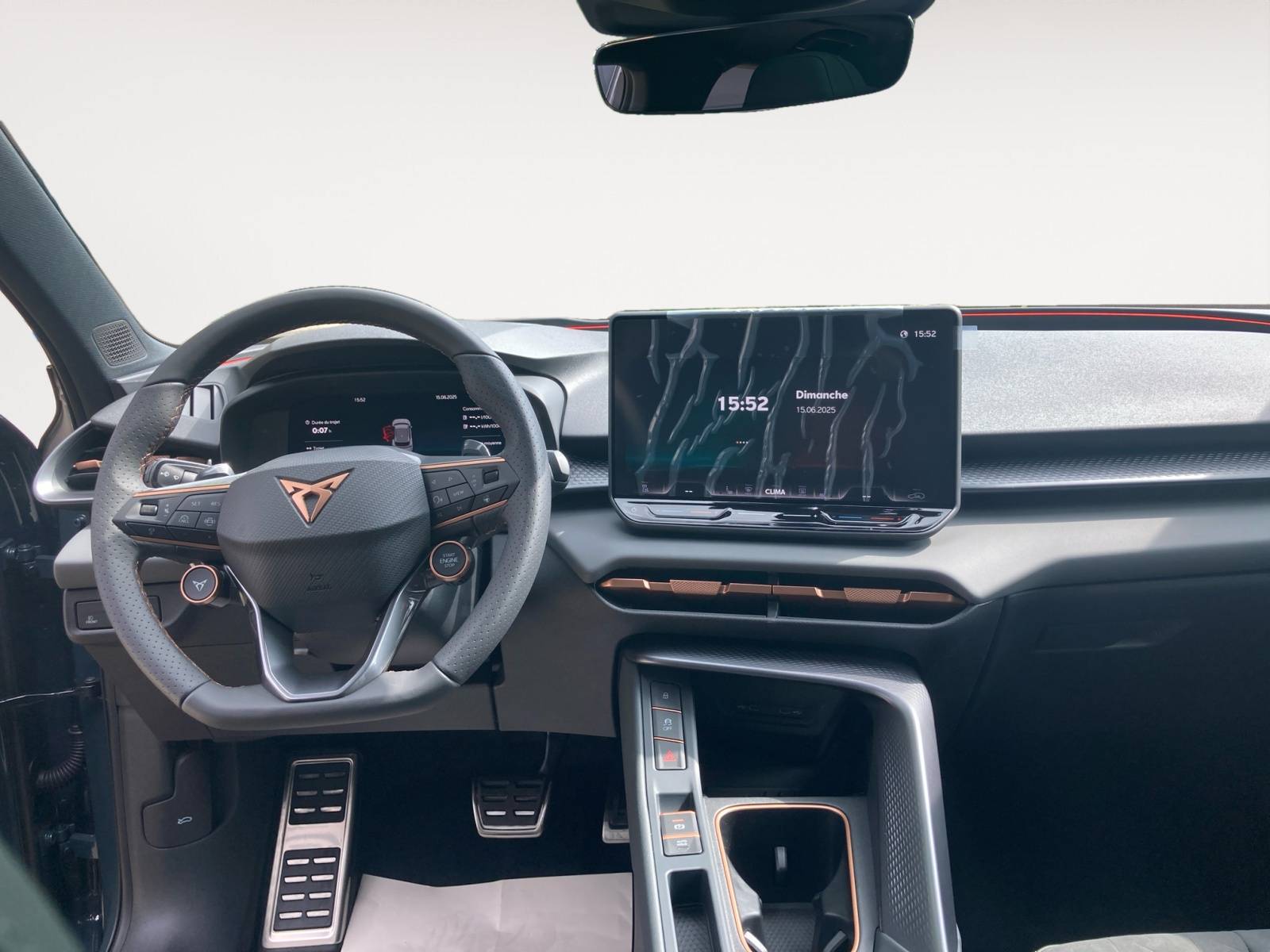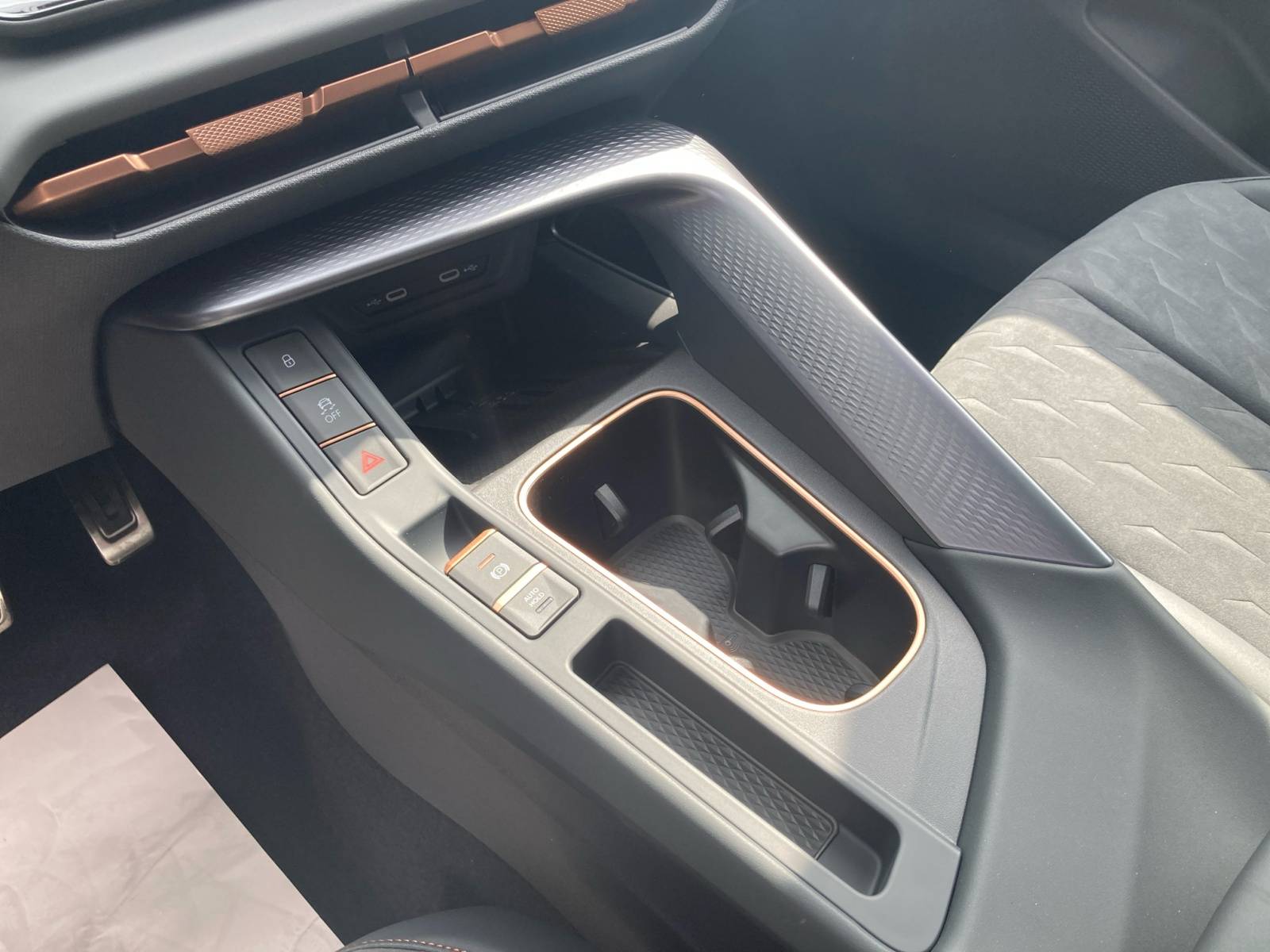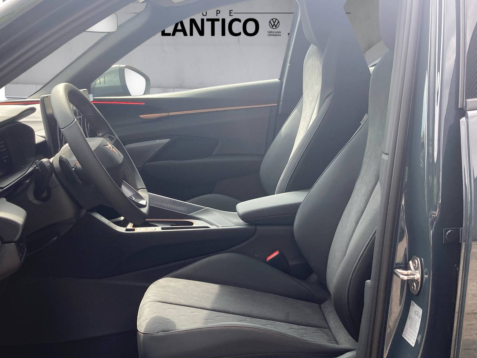 – Design Intérieur Moon Light (sièges baquets suédine + TEP Noir Asphalte surpiqûres cuivrées) – Logos CUPRA estampés sur les appuie-têtes – Planche de bord noir texturée avec aérateurs cuivrés – Contre-portes TEP noir texturé – Ciel de pavillon noir – Siège conducteur : chauffant avec réglage électrique à mémoire, y compris réglage lombaire – Siège passager : chauffant avec réglage électrique, y compris lombaire