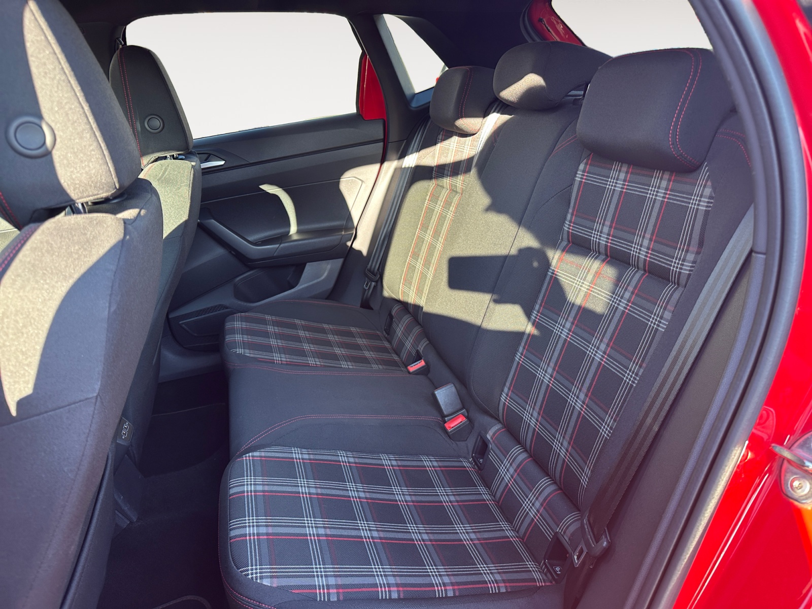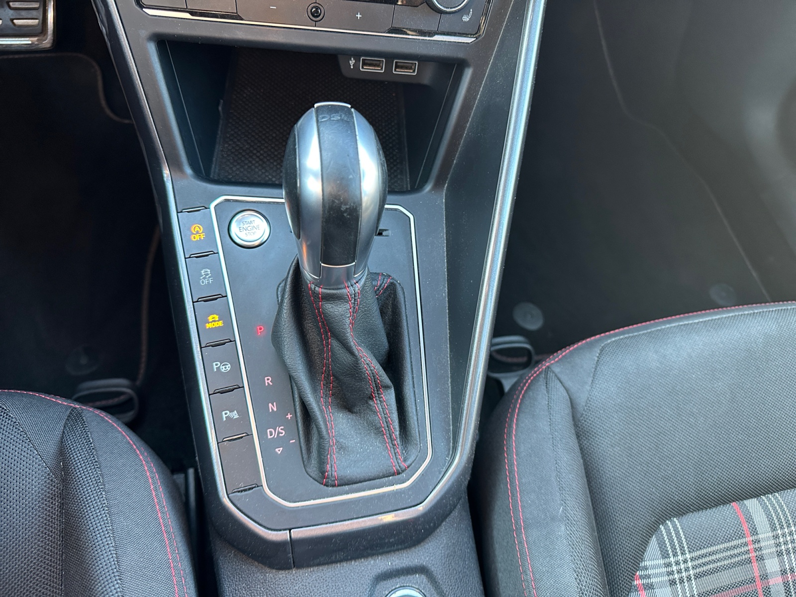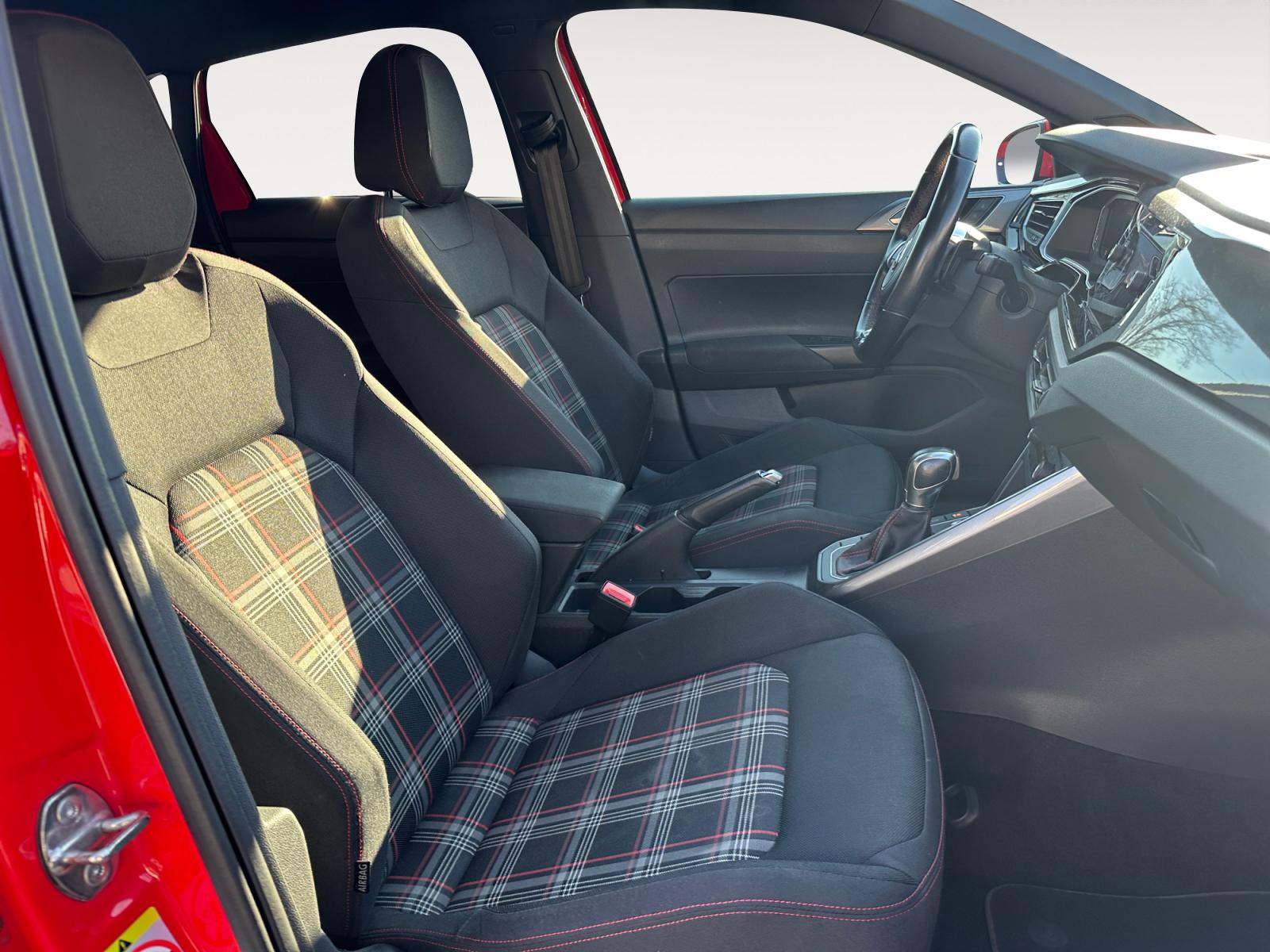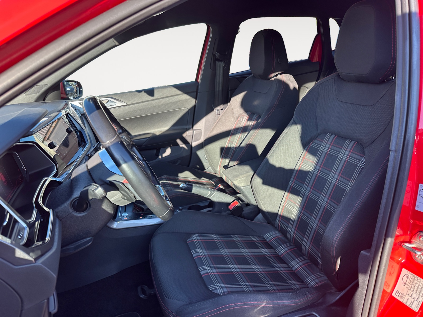 – Volant spécifique GTI multifonctions avec plaqages en chrome mat revêtu de cuir avec surpiqûres rouges et palettes de sélection des vitesses au volant